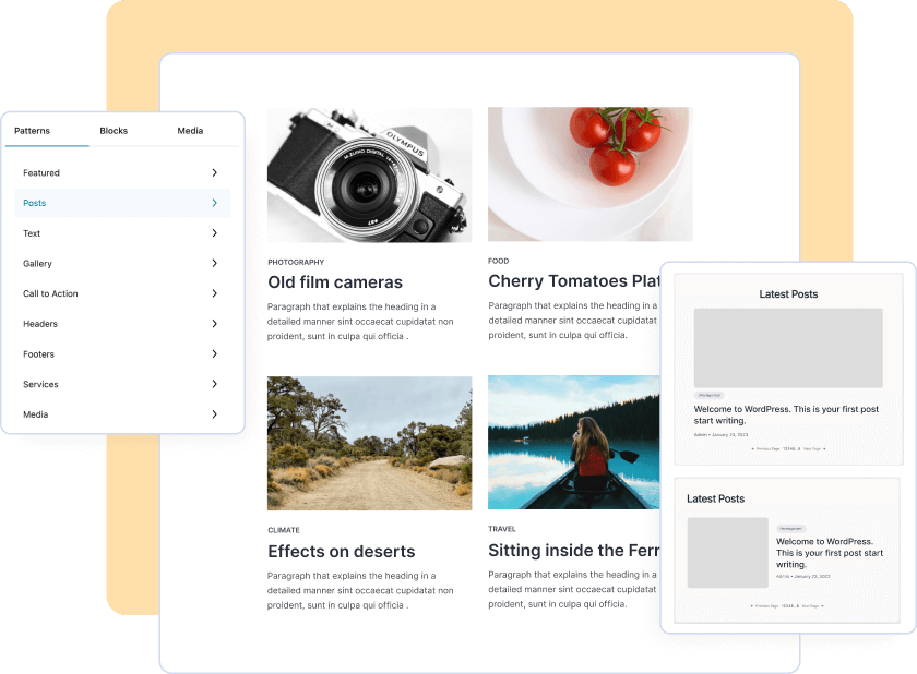 Blockmuster sind vorgefertigte Blocklayouts, die wir einfach in unseren Inhalt einfügen können. Diese Muster können helfen, Zeit zu sparen und visuell ansprechende Designs zu erstellen. Ermöglicht es uns, benutzerdefinierte Themes mit der blockbasierten Vorlage zu erstellen.